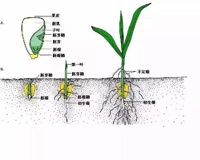 水、溫度、氧氣是種子發(fā)芽、出苗的三個(gè)最基本條件。玉米種子由兩部分組成,一部分是將來(lái)長(zhǎng)成植株的“胎兒”, 名稱叫胚;另一部分是供“胎兒”長(zhǎng)大的營(yíng)養(yǎng)物質(zhì),名稱叫胚乳。